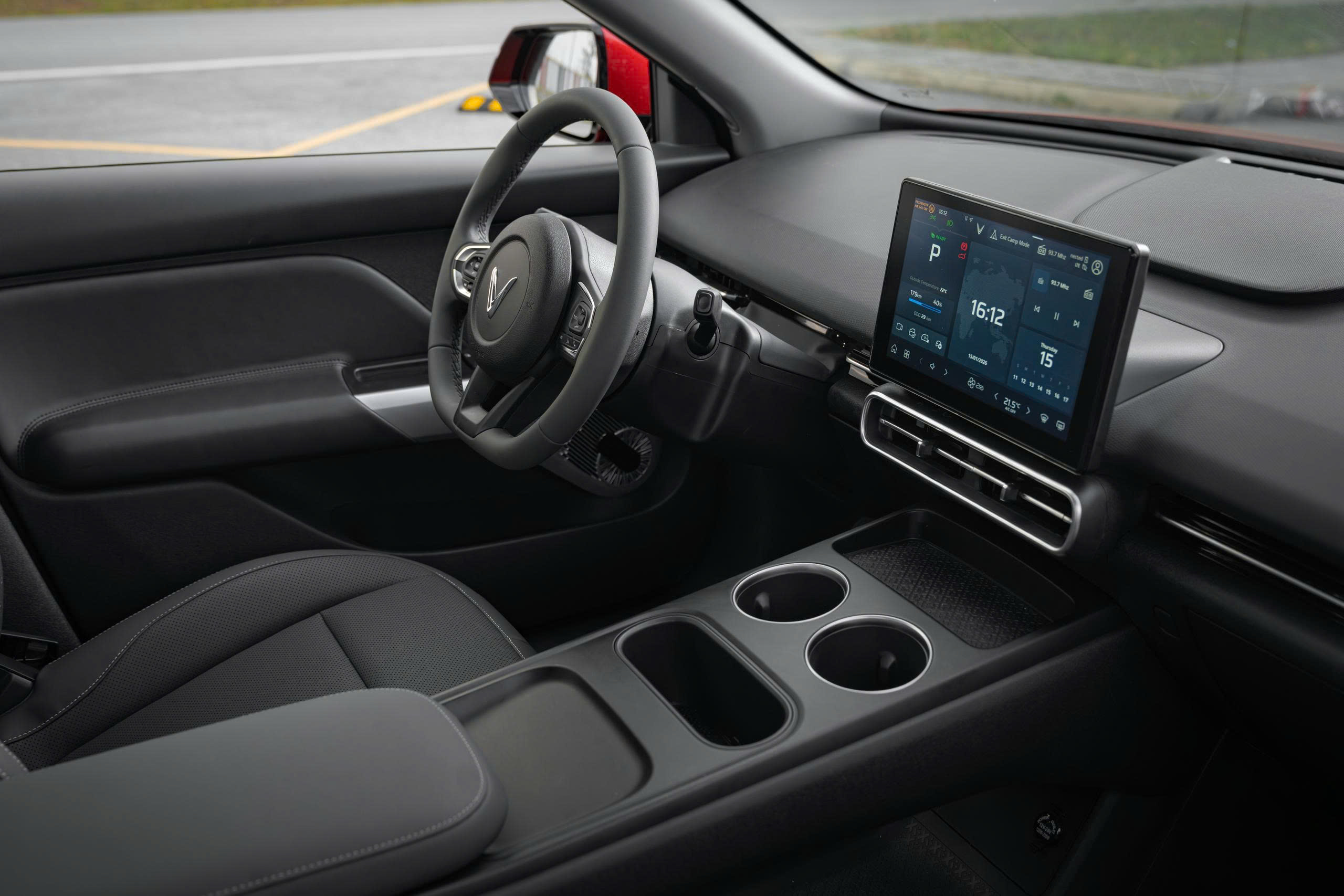 Khoang ca-bin là nơi VF MPV 7 thể hiện rõ nhất khác biệt so với Limo Green, tập trung vào trải nghiệm của người dùng cá nhân. Xe được trang bị ghế bọc da tổng hợp, vô-lăng D-Cut bọc da kèm các nút điều khiển, cần số điện tử đặt sau vô-lăng giúp giải phóng không gian khu vực trung tâm, giúp bố trí gọn gàng và hiện đại hơn. Đi kèm là màn hình giải trí 10,1 inch tiêu chuẩn, hỗ trợ Apple CarPlay và Android Auto.